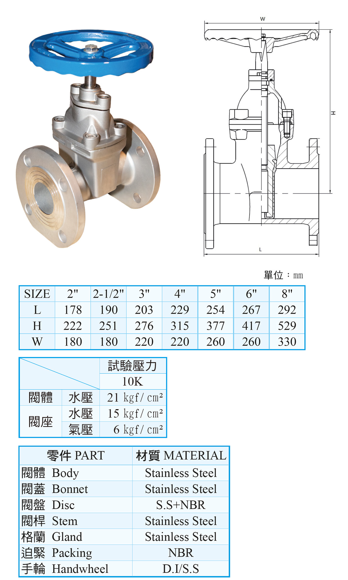 SF-RGV1 不銹鋼非昇桿閘門閥 法蘭口 JIS-10K